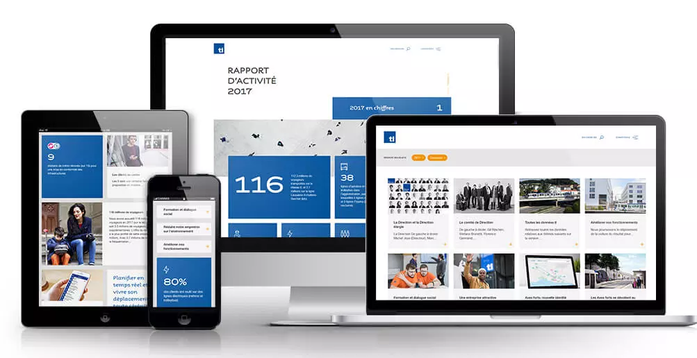 WordPress site to present the annual activity report of Transports en commun Lausannois. The front-end part uses CSS Grid for layout with a flexbox fallback for IE11. The search engine by categories is made in ajax, without plugin. Given the number of images on the site, a lazy loading system has been set up.